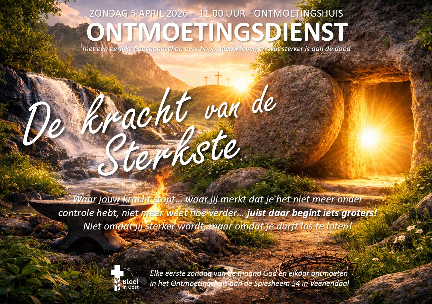 Iedere 1e zondag van de maand is er een laagdrempelige Ontmoetingsdienst in het Ontmoetingshuis, Spiesheem 54.Volgende dienst: zondag 5 april om 11.00 uur