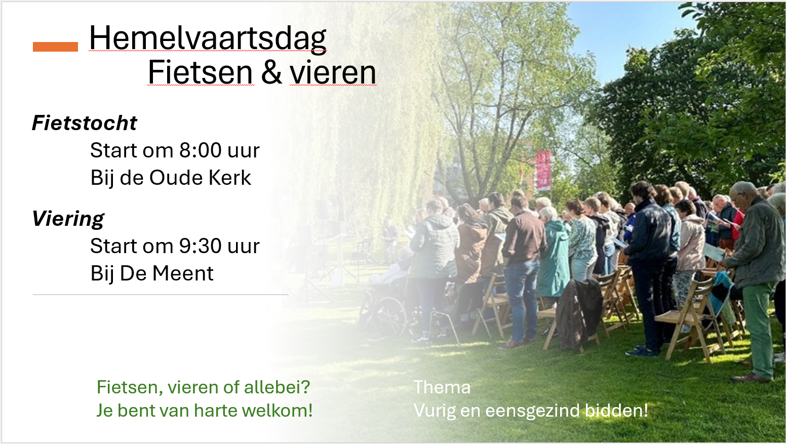 Iedere 1e zondag van de maand is er een laagdrempelige Ontmoetingsdienst in het Ontmoetingshuis, Spiesheem 54.Volgende dienst: zondag 3 mei om 11.00 uur | ||