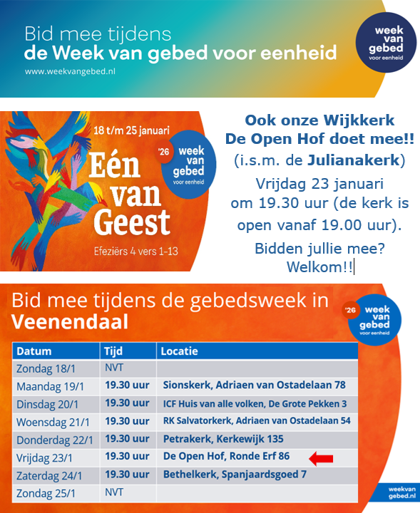 Deze gebedsdienst is voorbereid door Wijkgemeente De Open Hof samen met de Julianakerk.