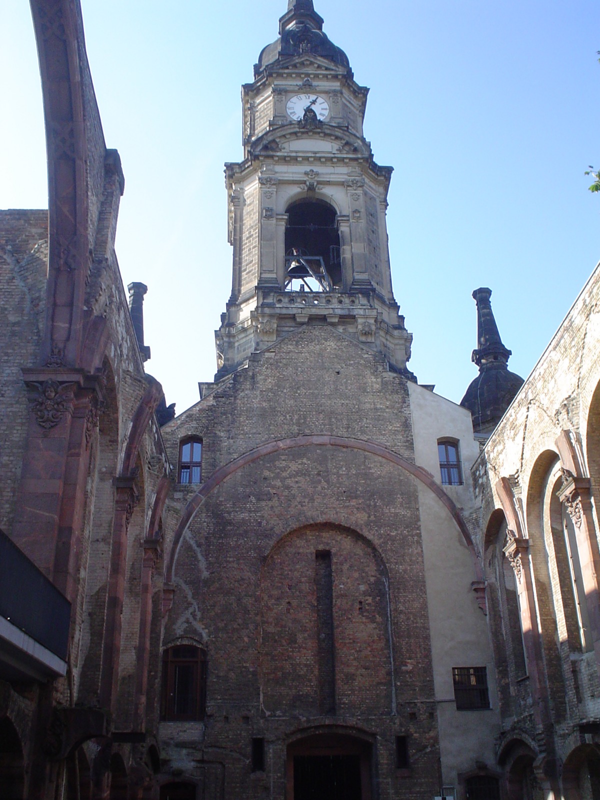 Op de foto is de kerk van onze voormalige partnergemeente te zien. Deze kerk is in de tweede wereldoorlog gebombardeerd en is nog steeds zo gebleven.