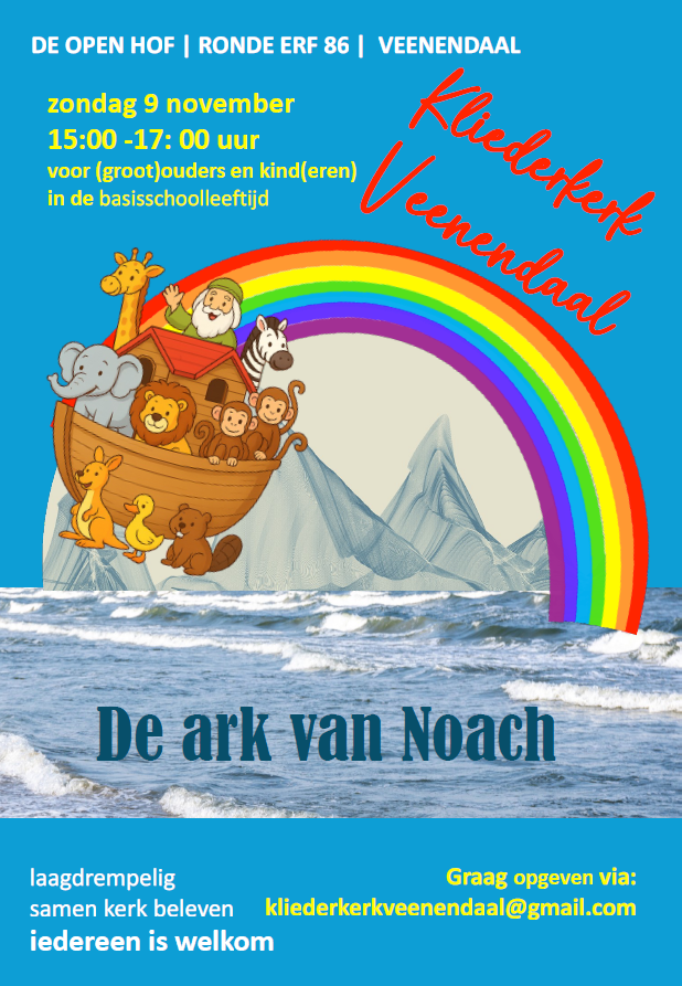 Zondag 9 november van 15.00-17.00 uur! Thema: De Ark van Noach ![]() Klik hier voor de flyer! |